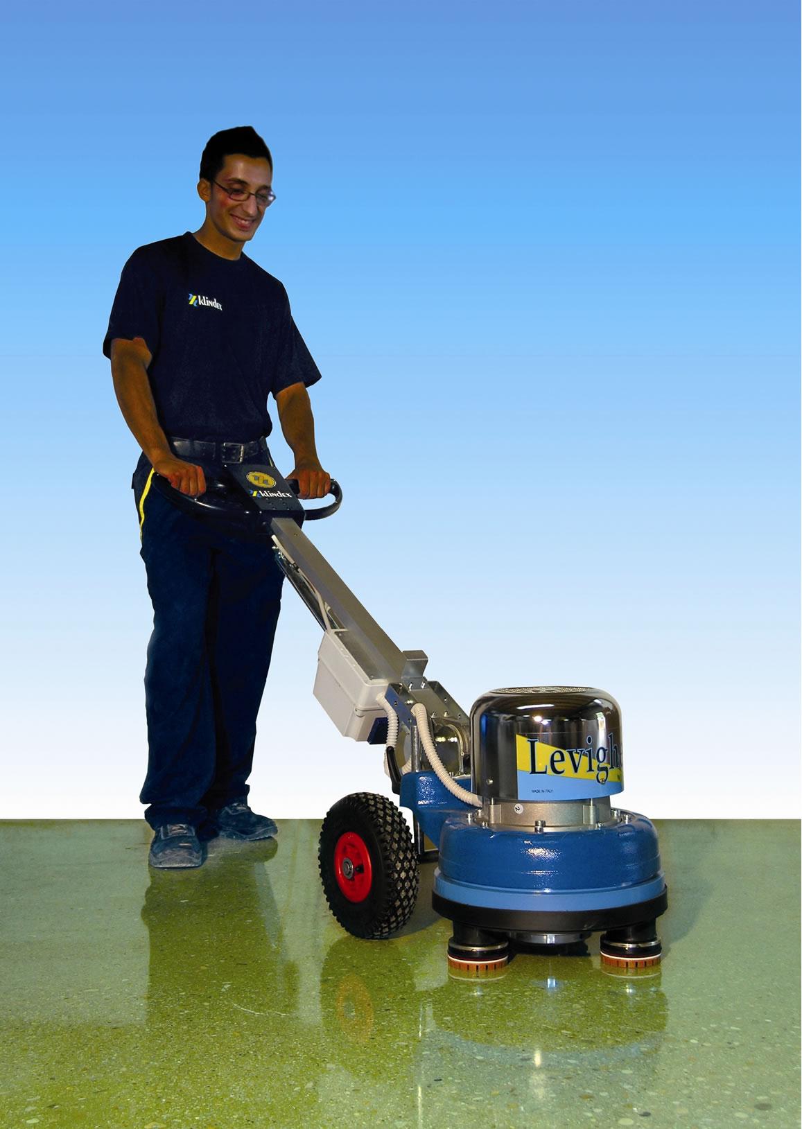 LEVIGHETOR 600 is a break-through machine that has changed the way marble, granite and any other natural stone floor is grinded, honed and polished! Thanks to the Klindex patented 360° directionable wheels that allow to move the machine in any direction, the LEVIGHETOR 600 can work in both large and narrow areas. Thanks to its powerful 4hp motor, the Levighetor 600 is the only mono-phase machine in the world that is able to work with additional weights for a total of up to 160kg (350lbs).